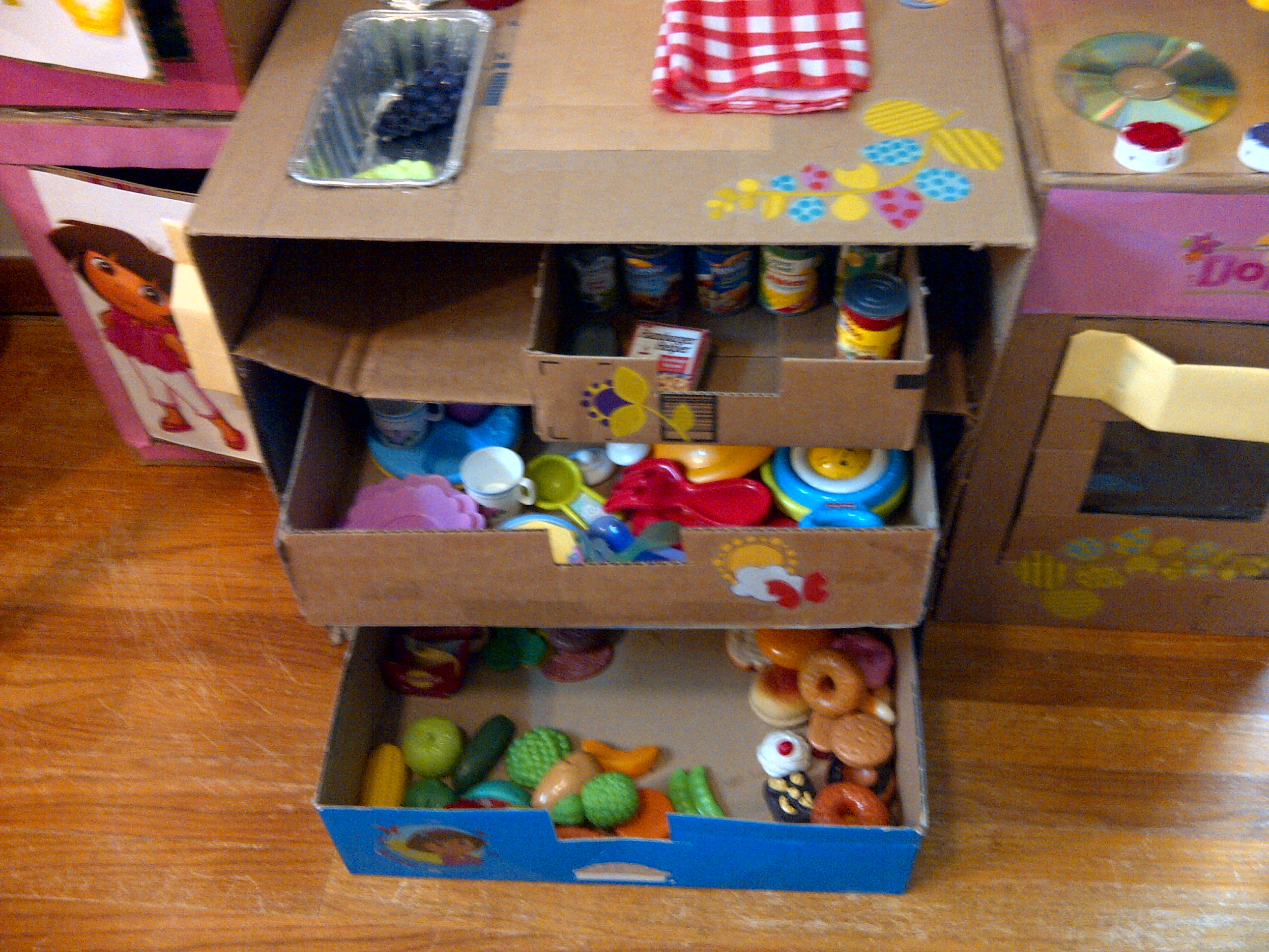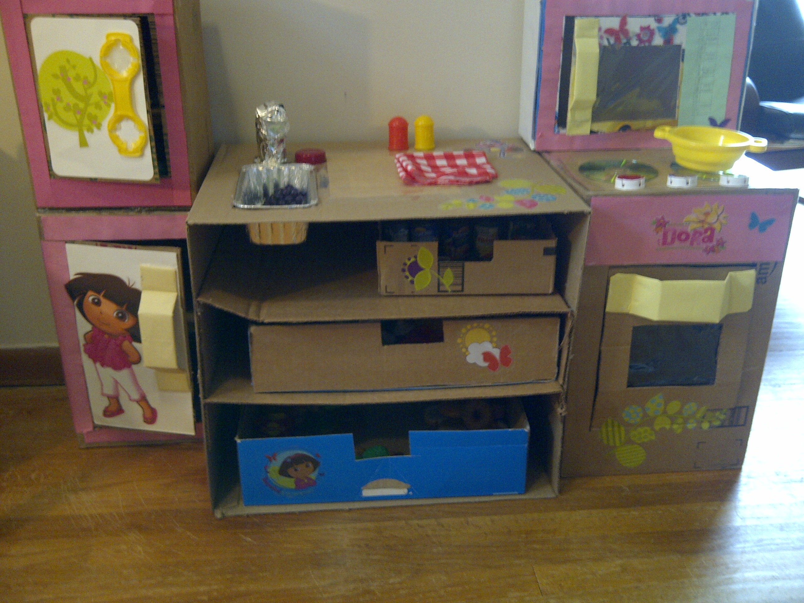 This creative mom had so much fun making a cardboard kitchen for my 2-year-old daughter.